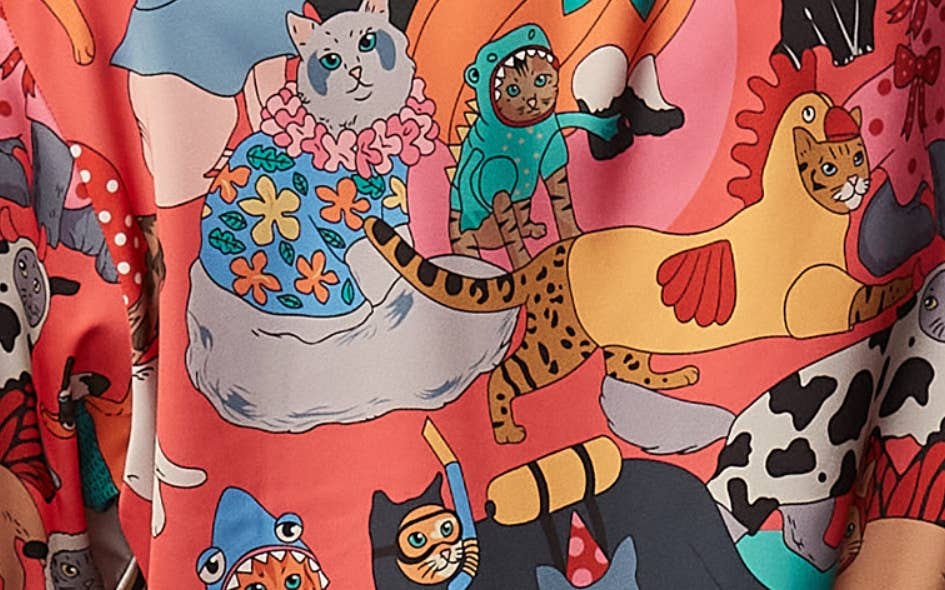 Women's Silk Pajama set with desserts & pet prints. A very fun and cute lounge set.