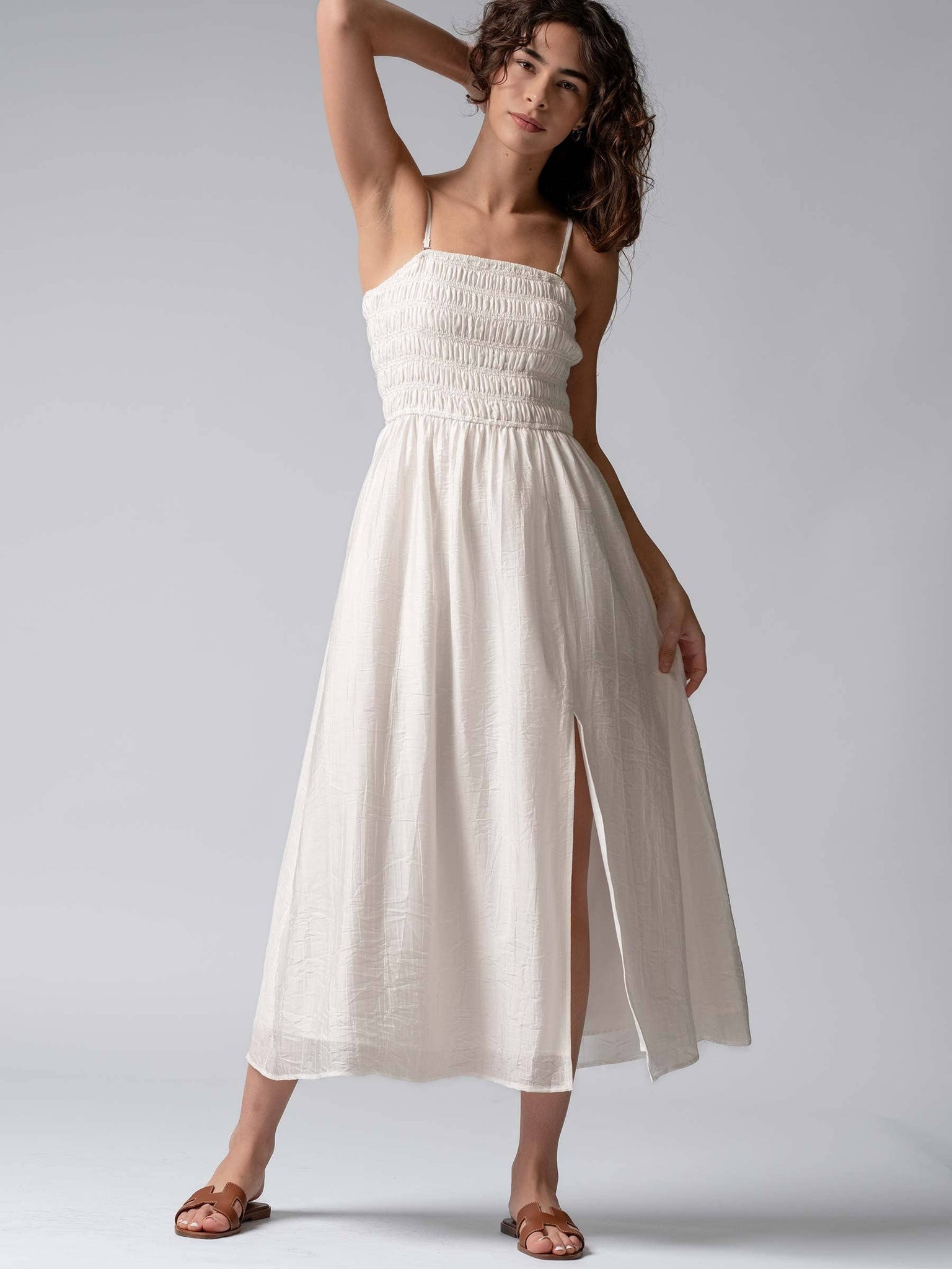 Smocked Tencel Maxi Dress with Side Slit