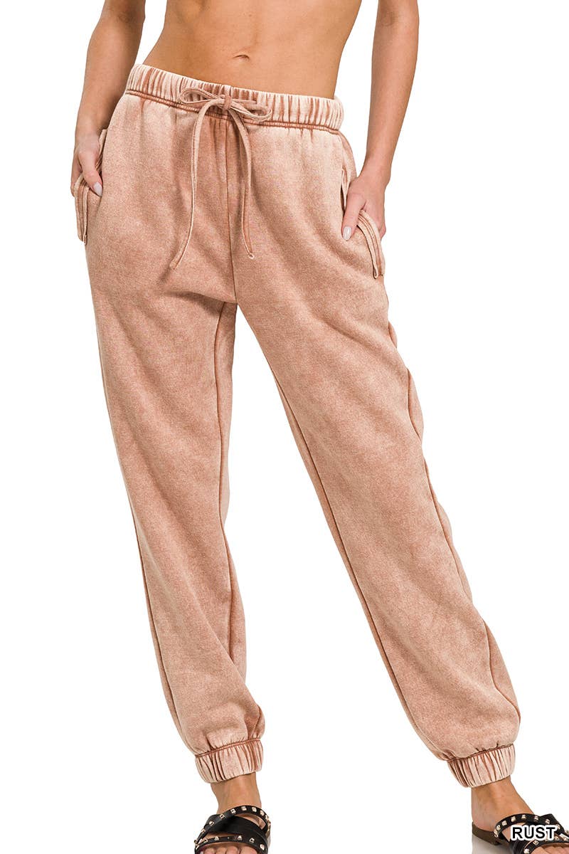 SI-26132 ACID WASH FLEECE SWEATPANTS WITH POCKETS